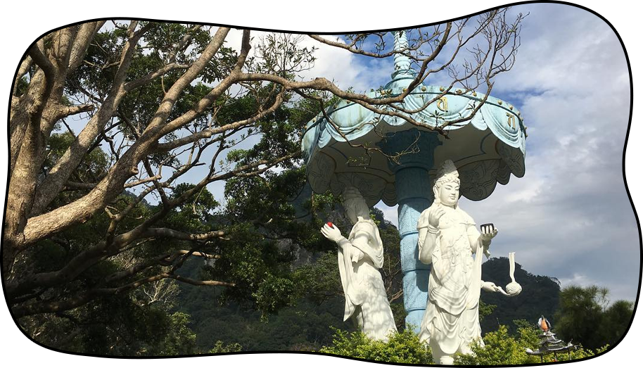 開山院位在觀音山硬漢嶺登山口附近,首先映入眼簾的是開山園,是個提供遊客歇息的好場所,裡面有一個大型的三面觀世音菩薩塑像,再往內走便可看到一棟大門深鎖的石造建築,即為開山院。